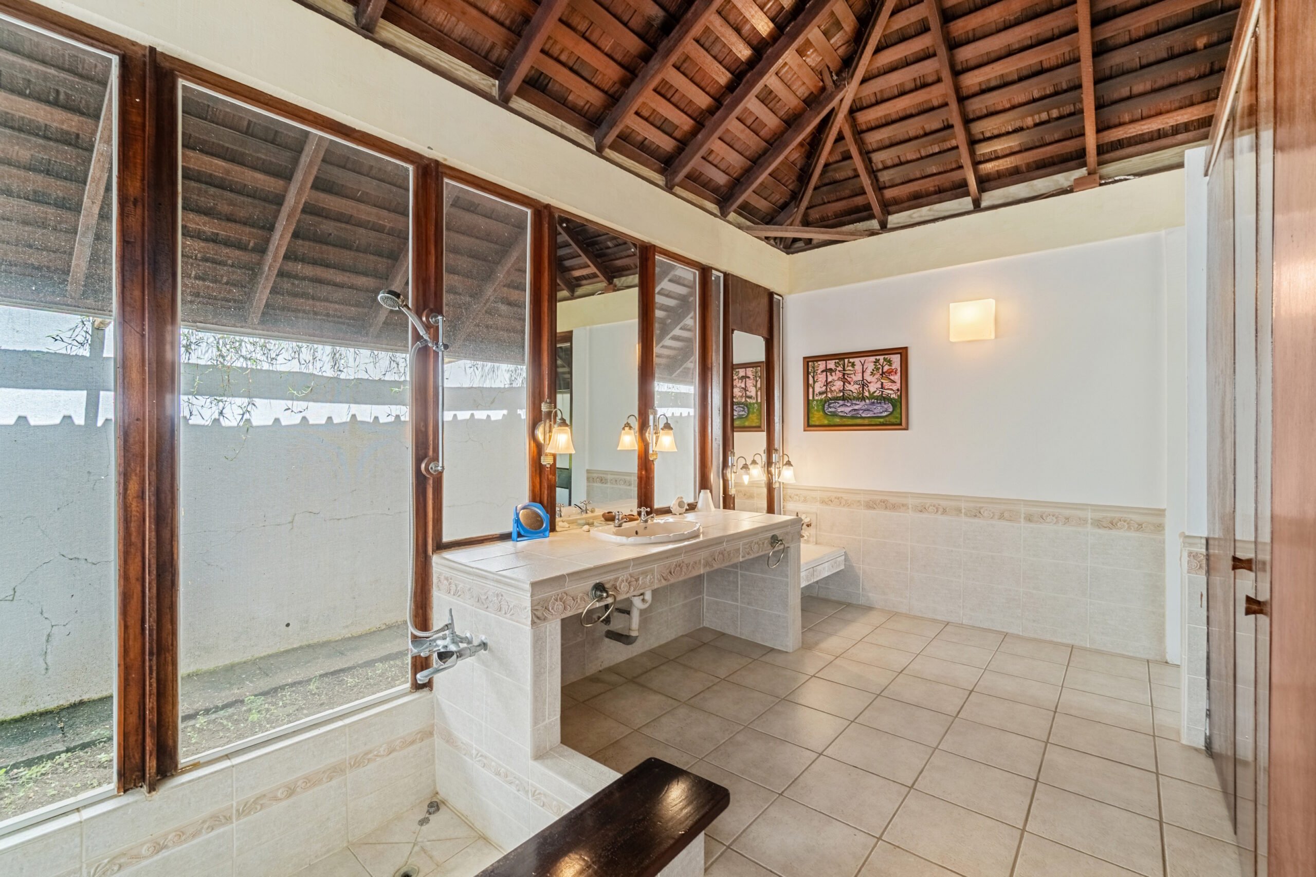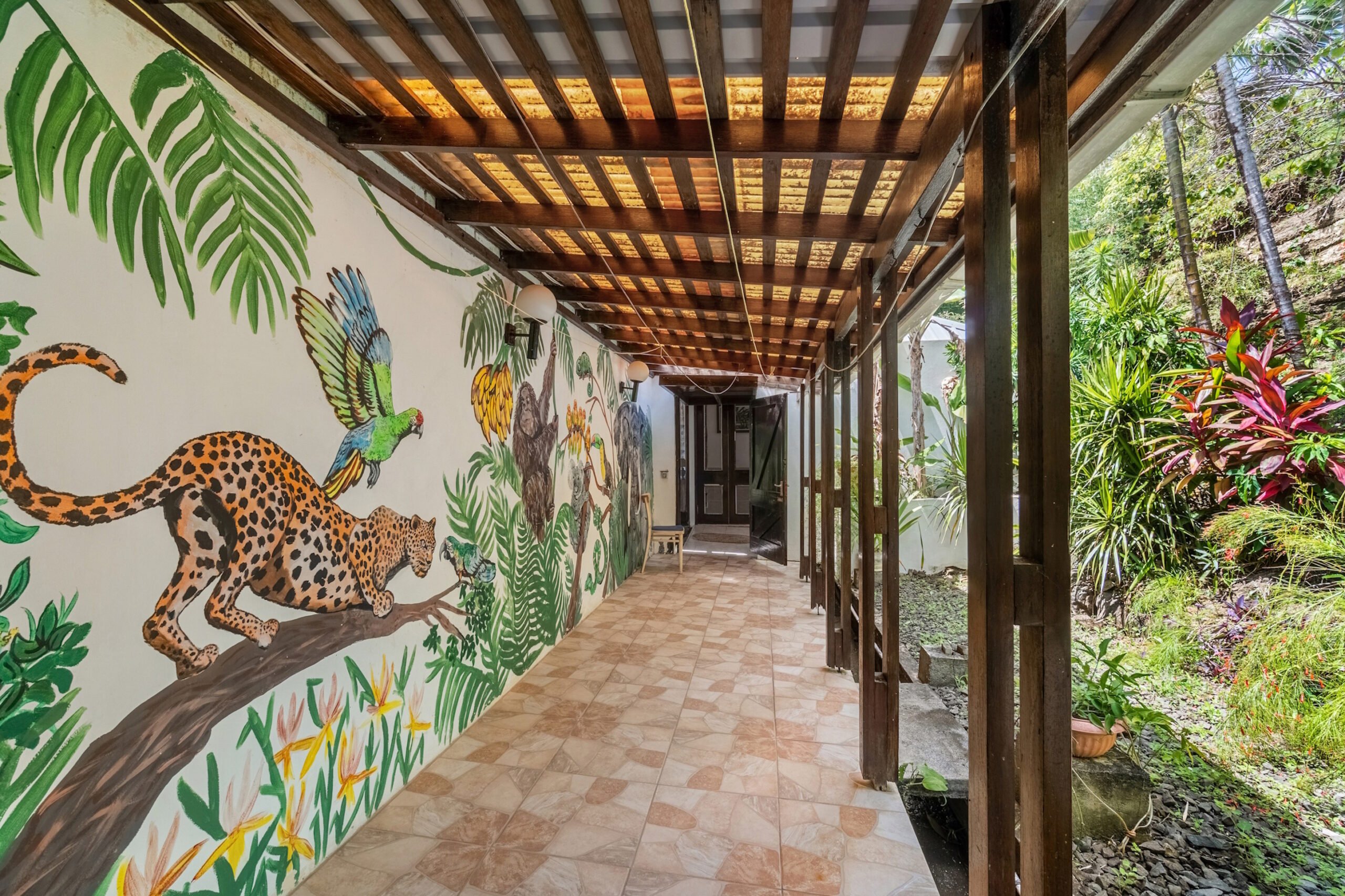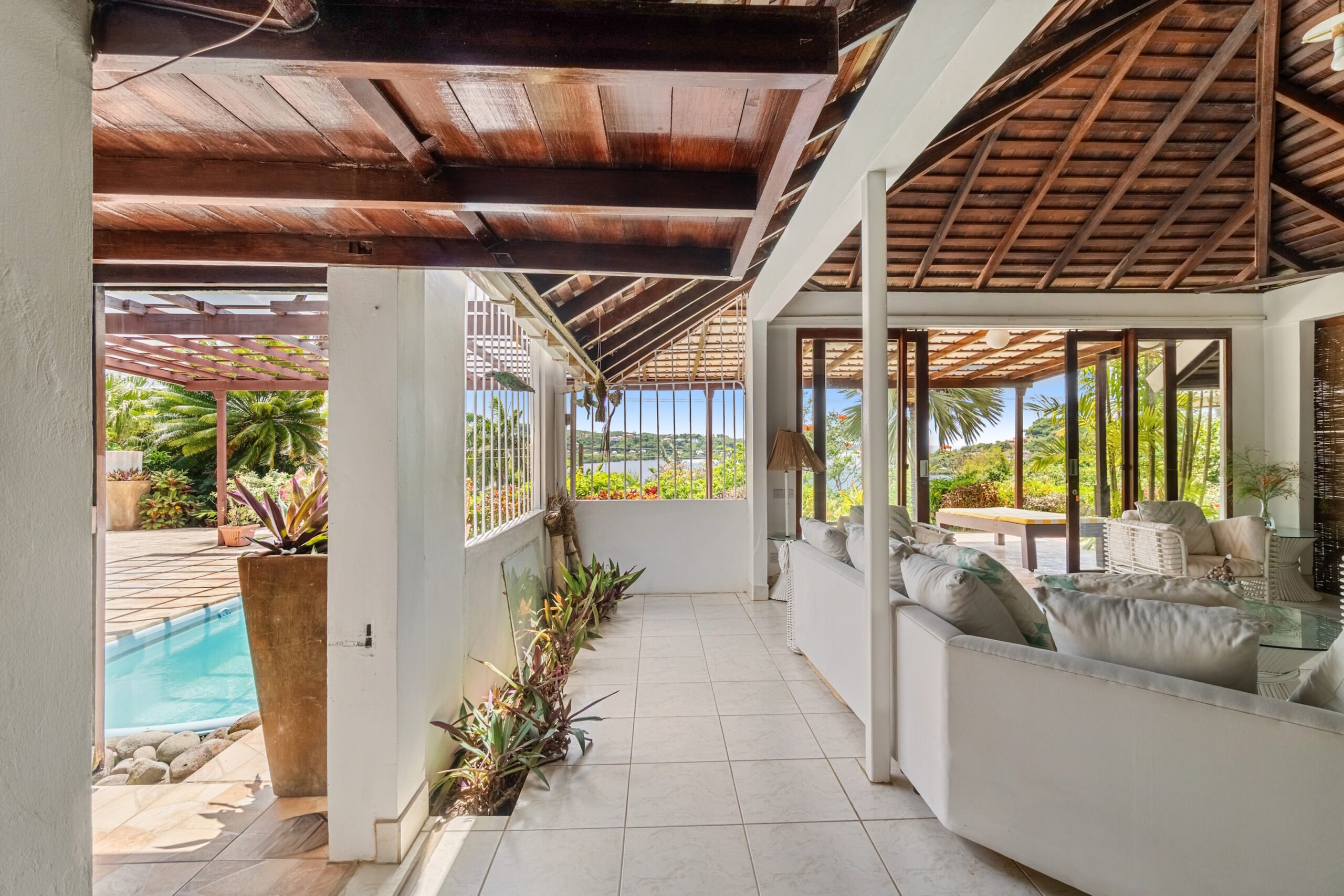 Designed for effortless indoor-outdoor living, the home features a spacious living area that opens onto a large veranda ideal for relaxing or entertaining while immersed in the surrounding natural beauty. The original owners, avid nature lovers, incorporated lush interior plant beds that bring the garden indoors, creating a truly tranquil atmosphere.