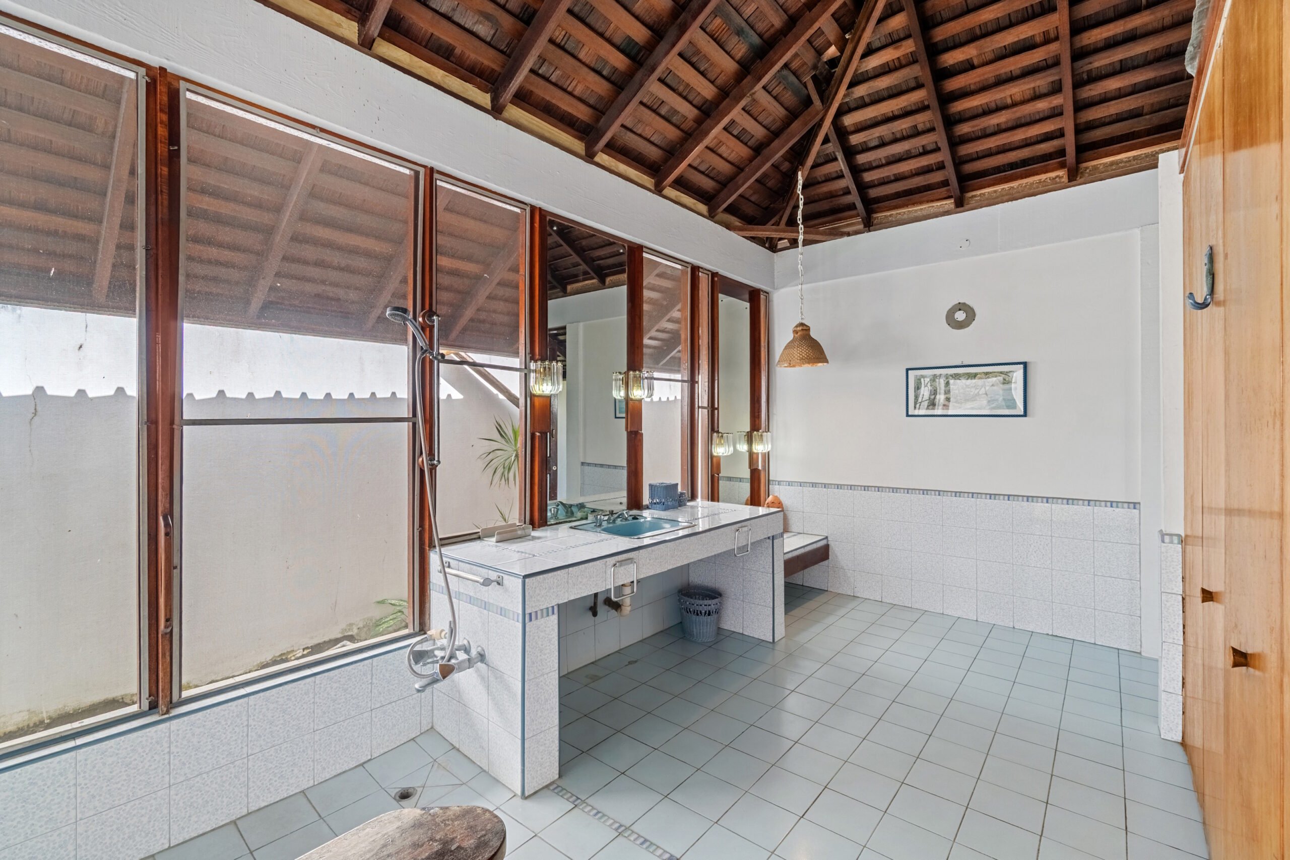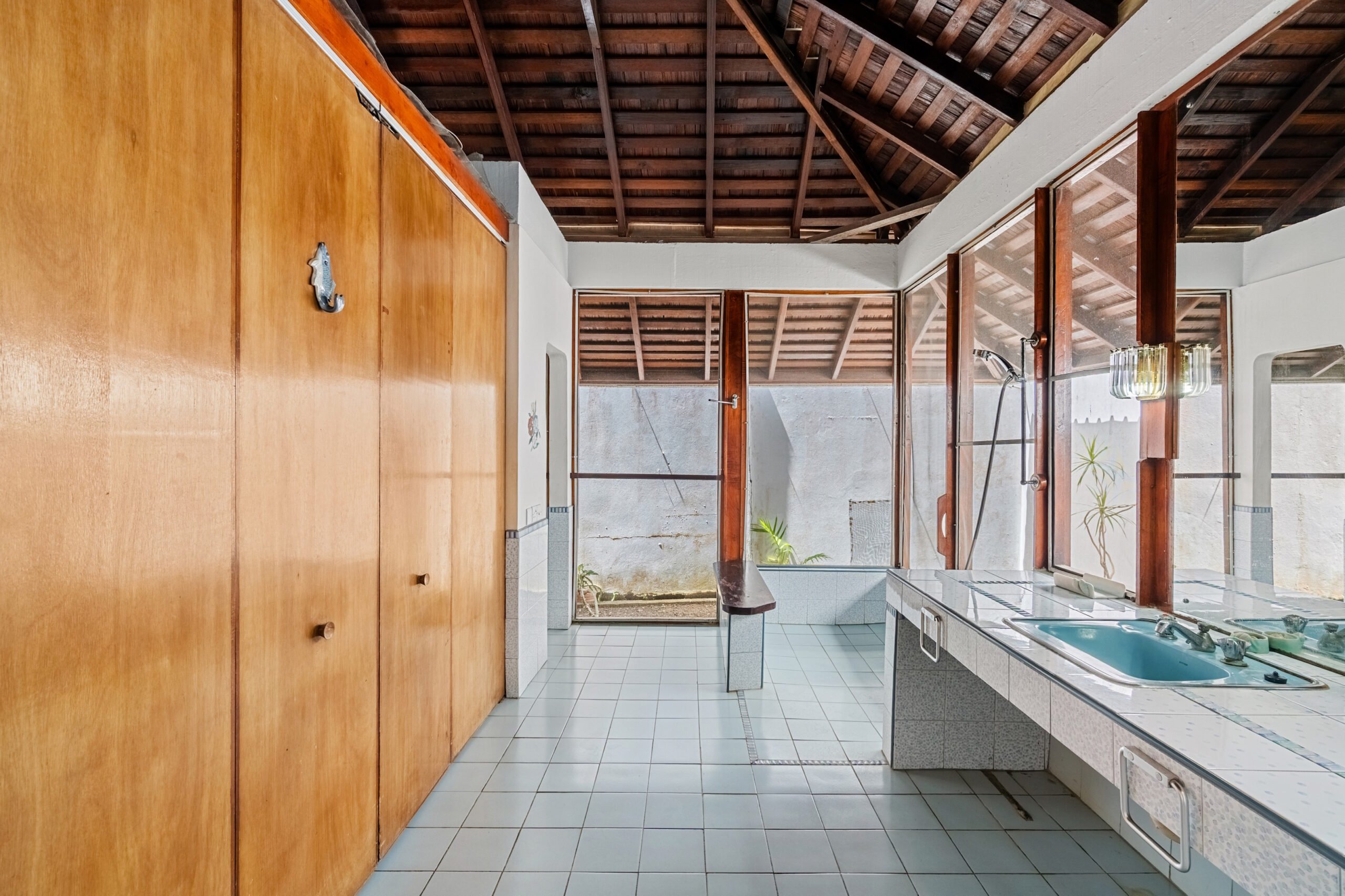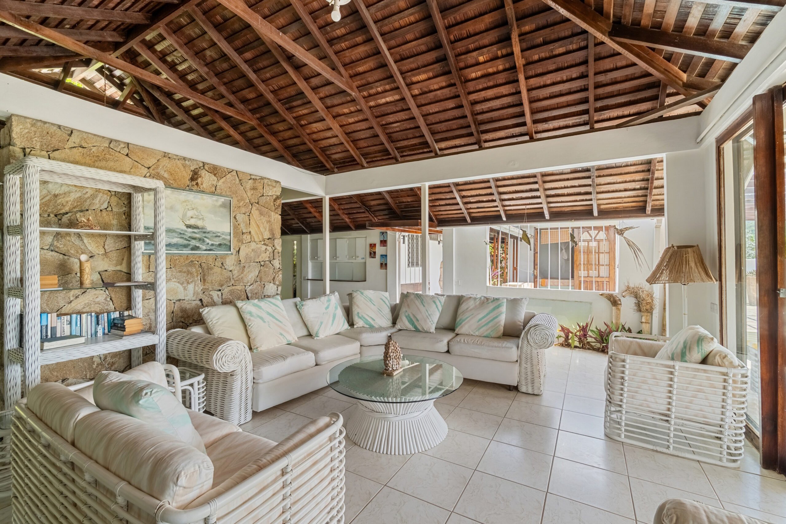 Designed for effortless indoor-outdoor living, the home features a spacious living area that opens onto a large veranda ideal for relaxing or entertaining while immersed in the surrounding natural beauty. The original owners, avid nature lovers, incorporated lush interior plant beds that bring the garden indoors, creating a truly tranquil atmosphere.