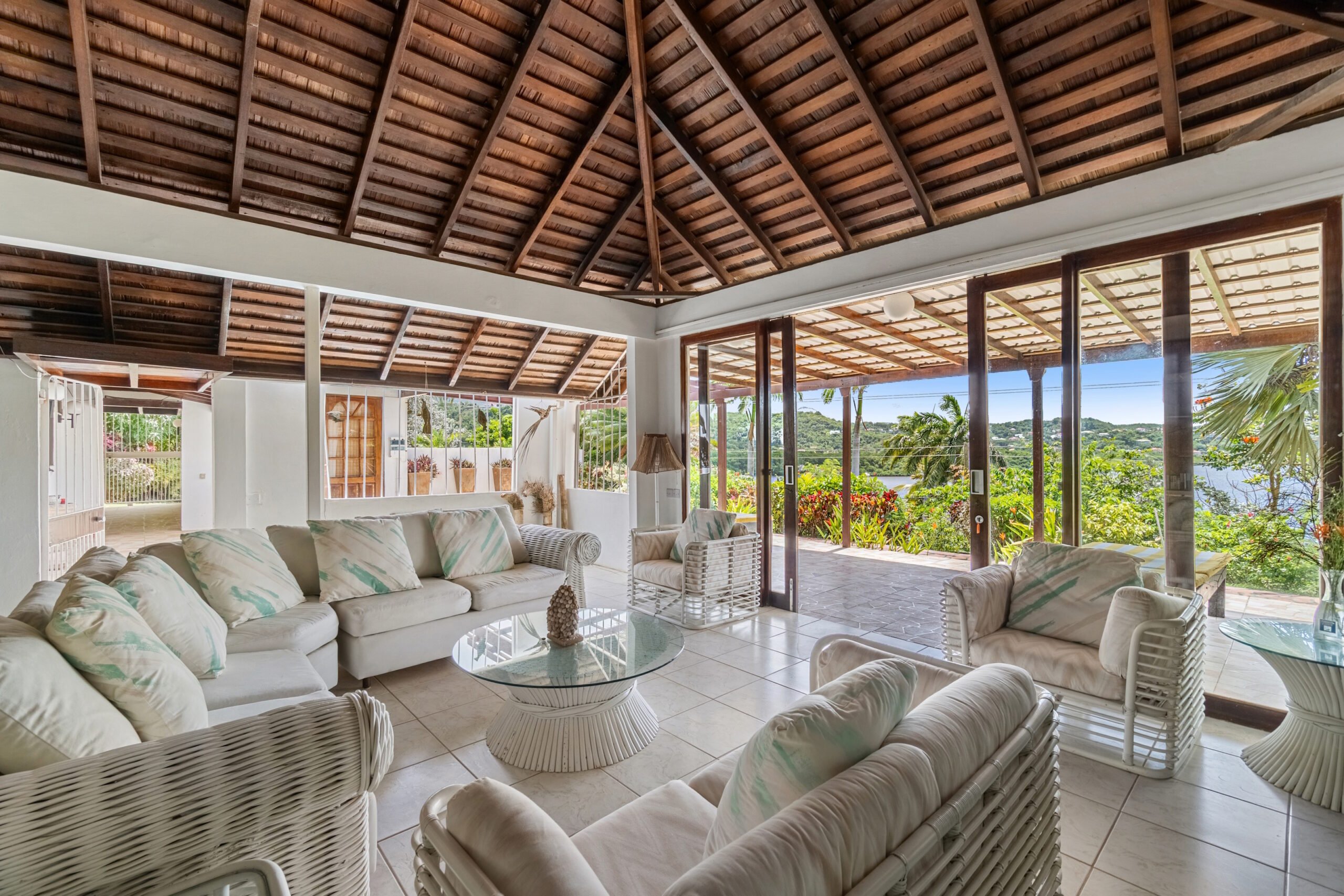Set on two gently sloping lots totaling approximately 35,800 sq. ft., this charming 4-bedroom bungalow style property is located within the exclusive, gated community of Westerhall Point one of Grenada’s most desirable residential neighborhoods. The property enjoys panoramic sea views overlooking Westerhall Bay and is perfectly oriented to the east, capturing cooling breezes and morning sun.