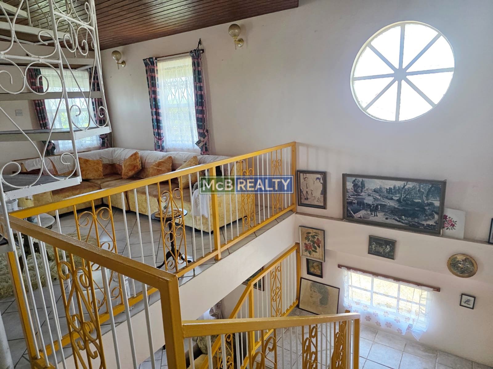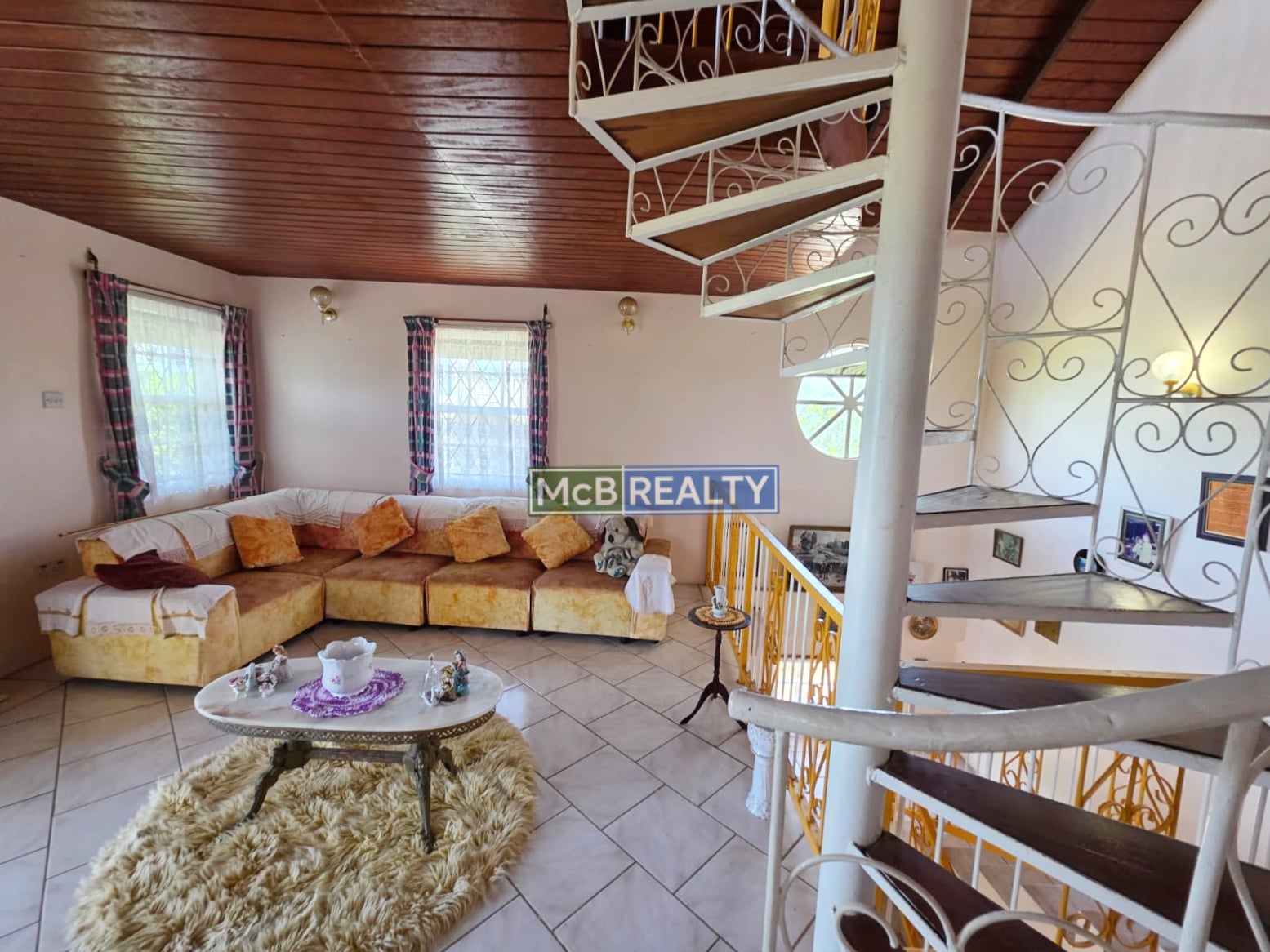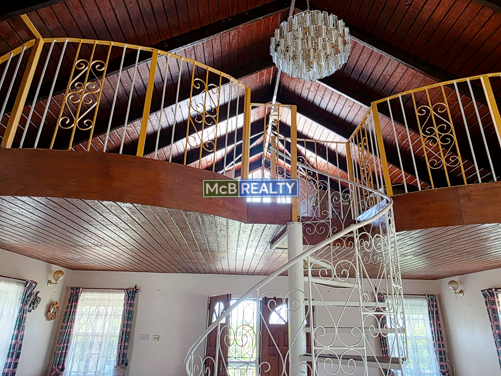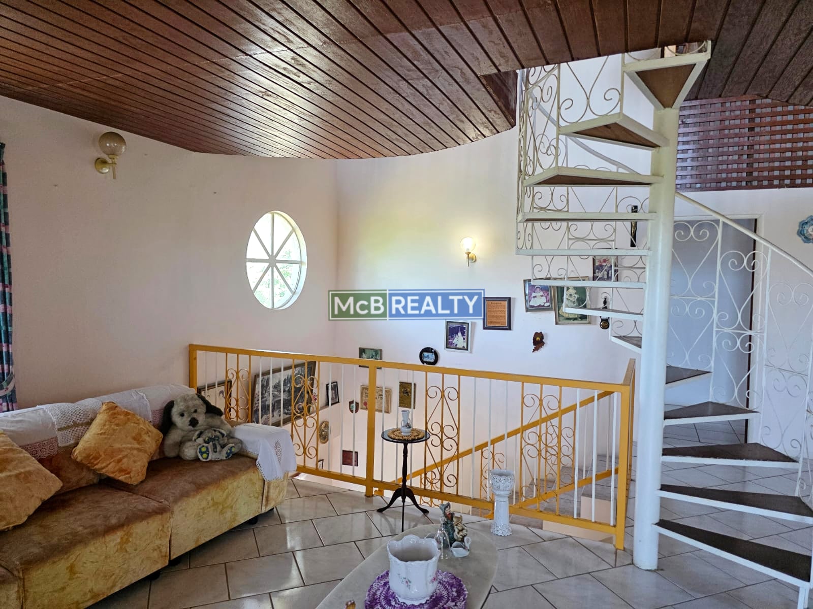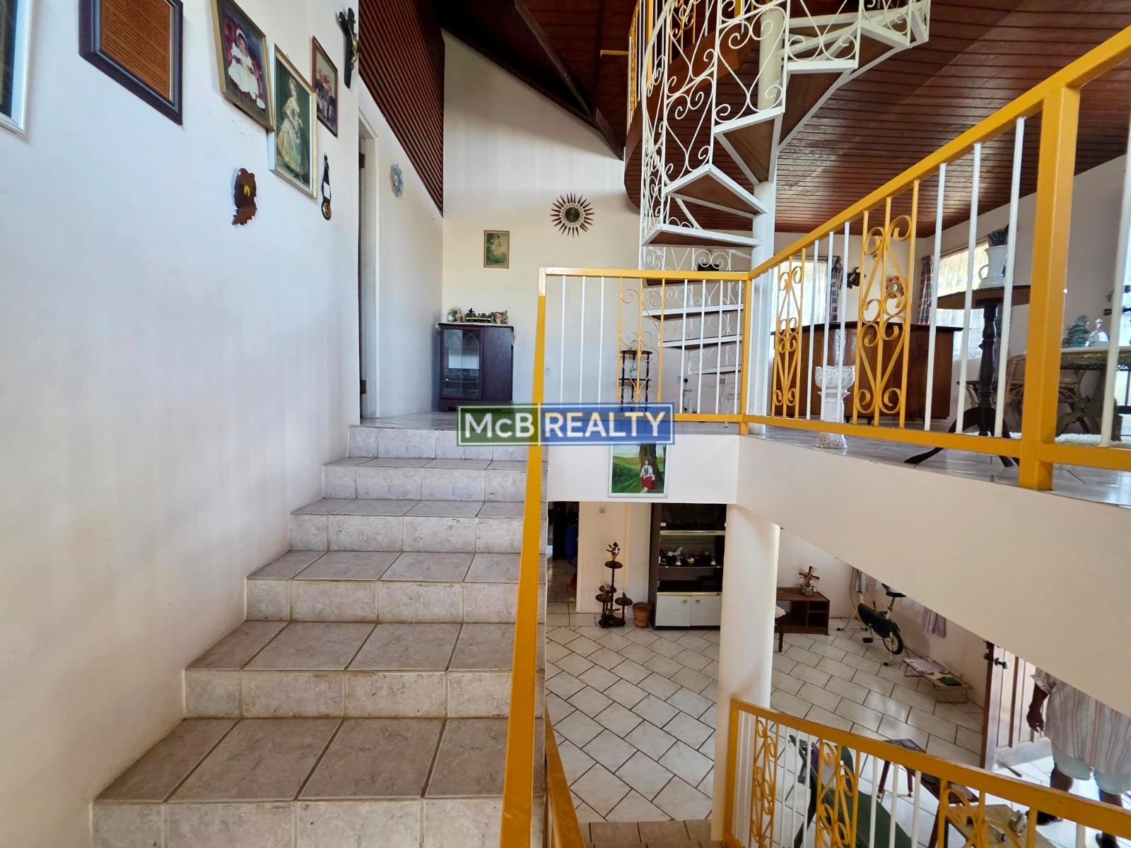 Going upstairs, an elegant internal staircase leads to four (4) spacious bedrooms and two bathrooms, including a luxurious master retreat with ensuite bathroom and balcony. An additional mezzanine floor accessible via a spiral staircase, provides a versatile space ideal for a home office, studio, or play area.
