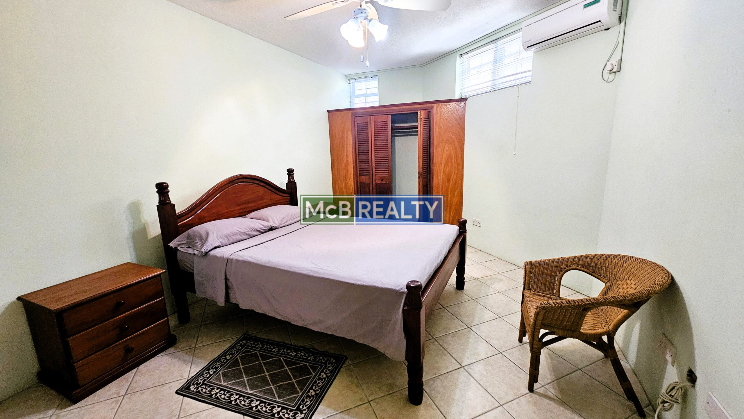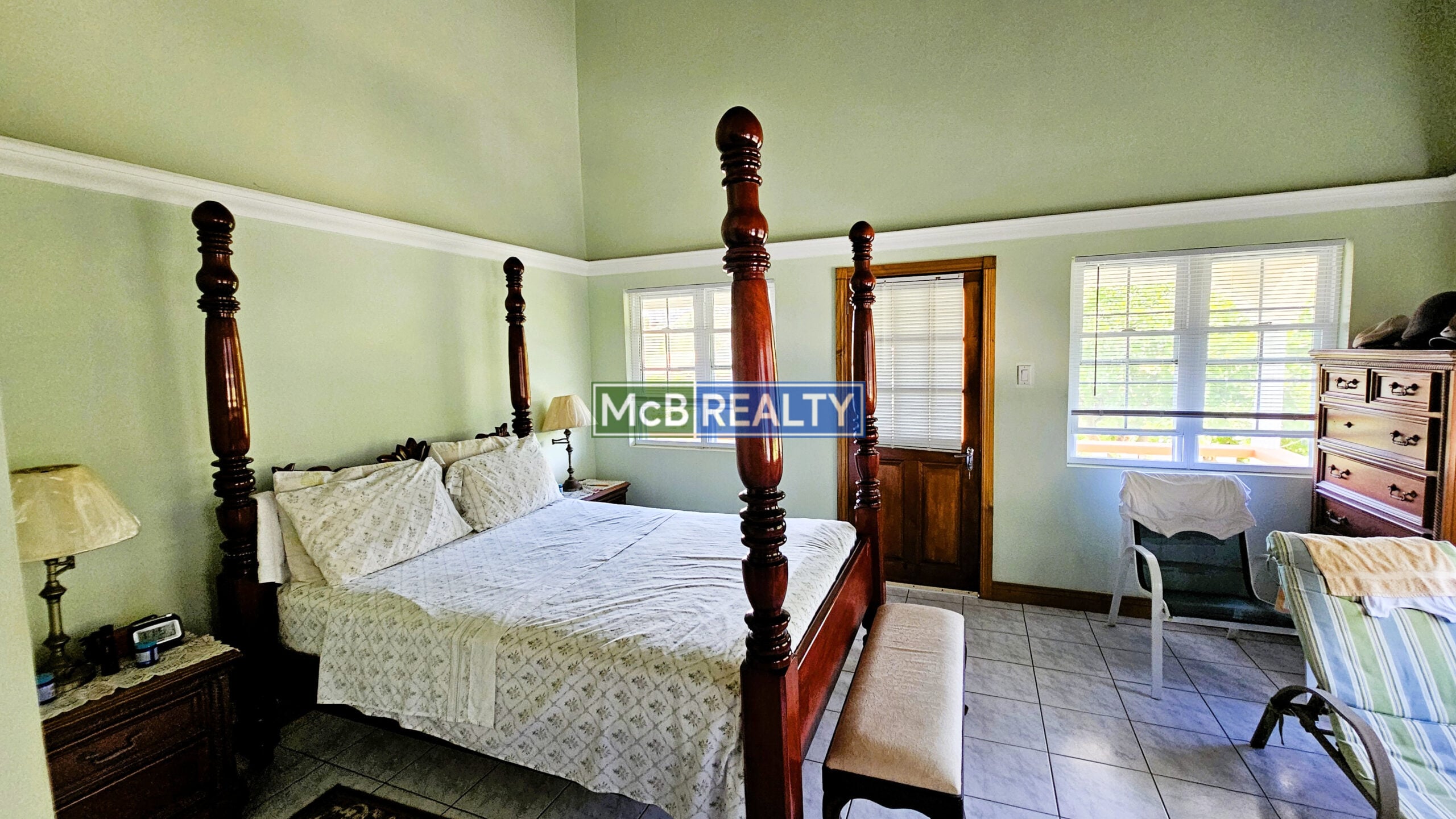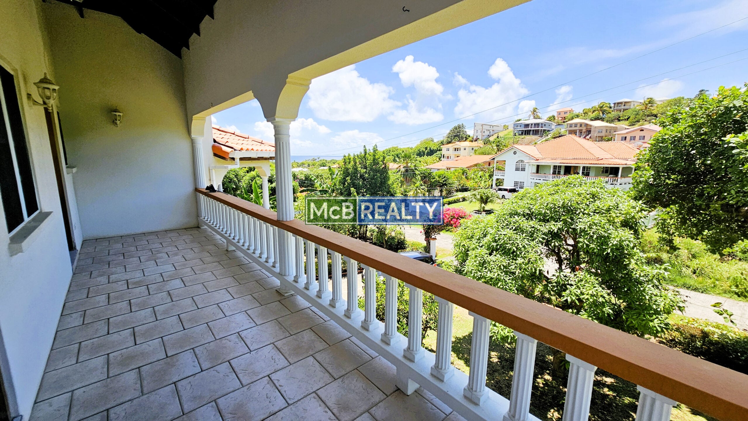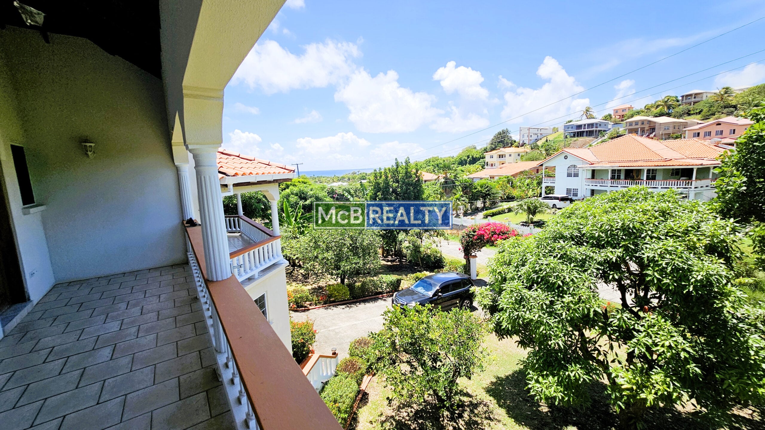 Ascend to your private oasis, accessible via a gated, paved driveway. The upper floor is dedicated to the spacious main residence, featuring an open-concept living, dining, and kitchen area that flows seamlessly onto a rooftop deck—the perfect vantage point to enjoy Grenada’s spectacular sunsets over the sea. The layout includes a master suite with a walk-in closet and an ensuite bathroom, plus two additional bedrooms, each with its own ensuite. A garage, laundry room, and two powder rooms complete this elegant living space.