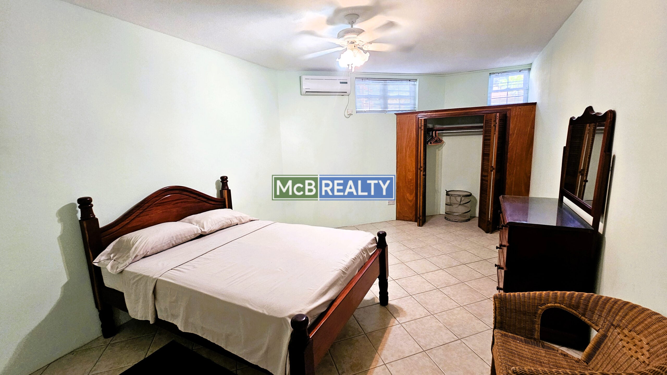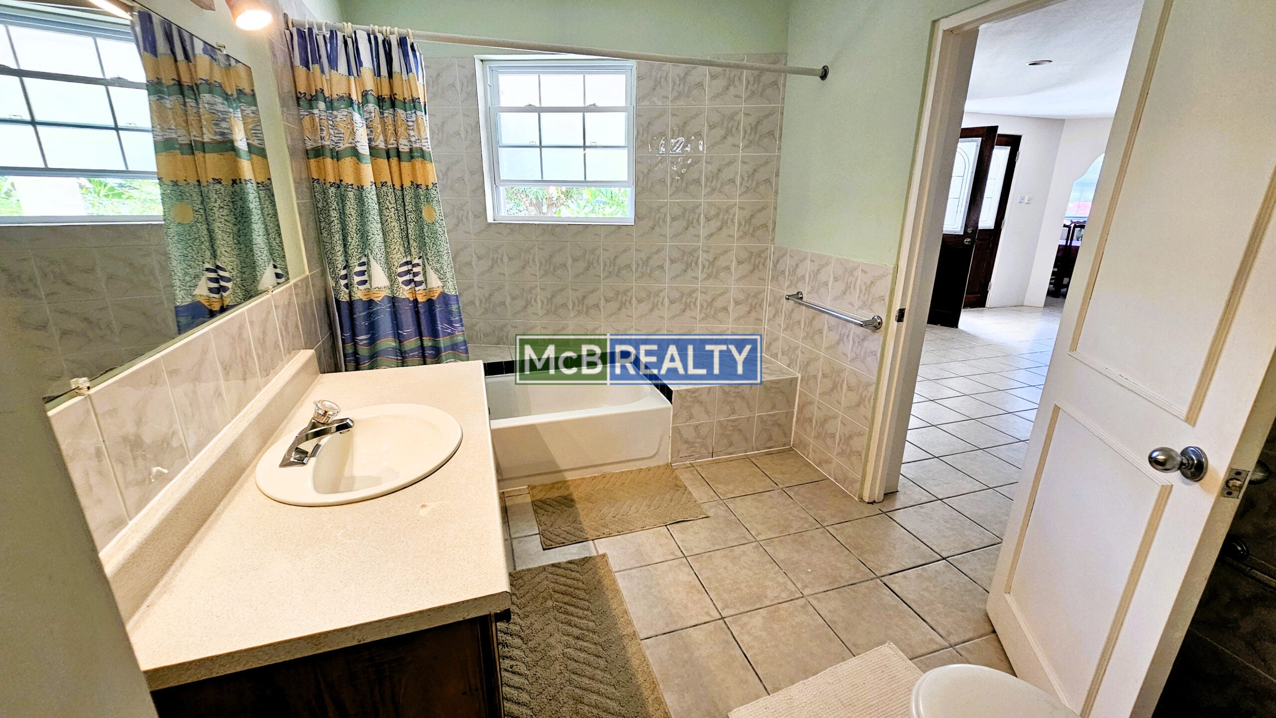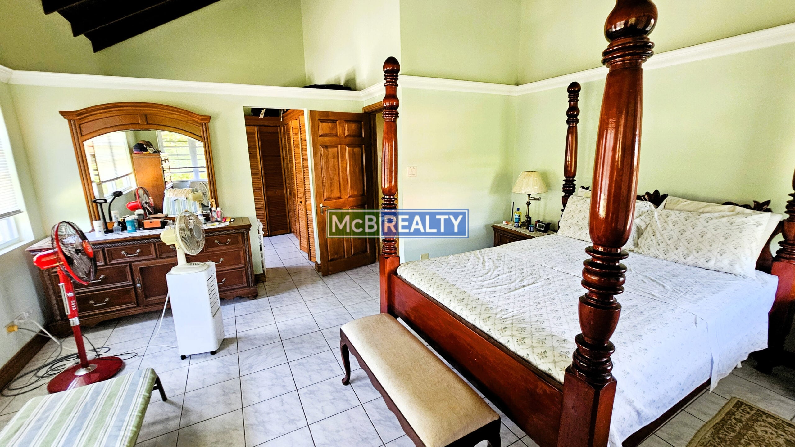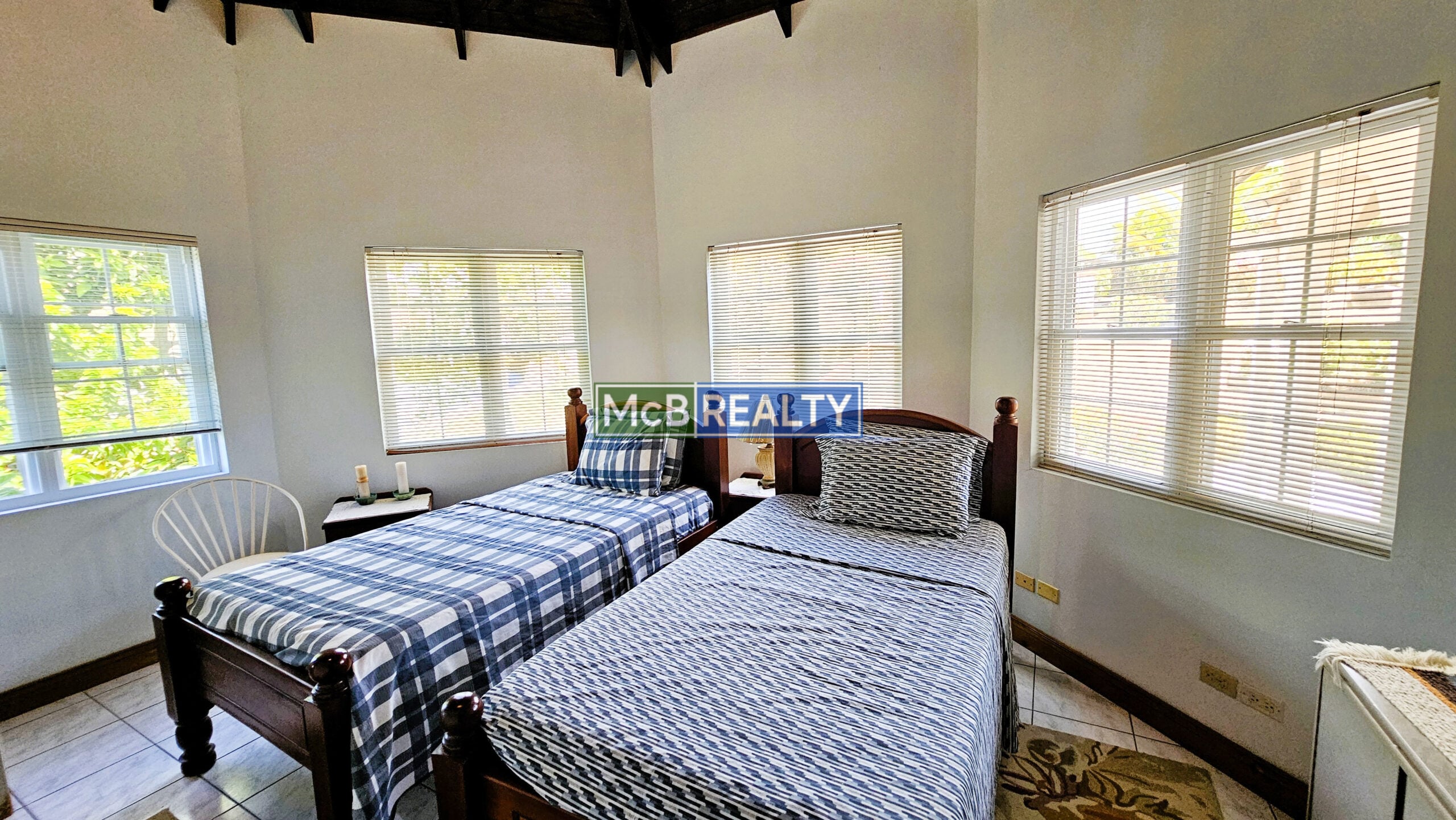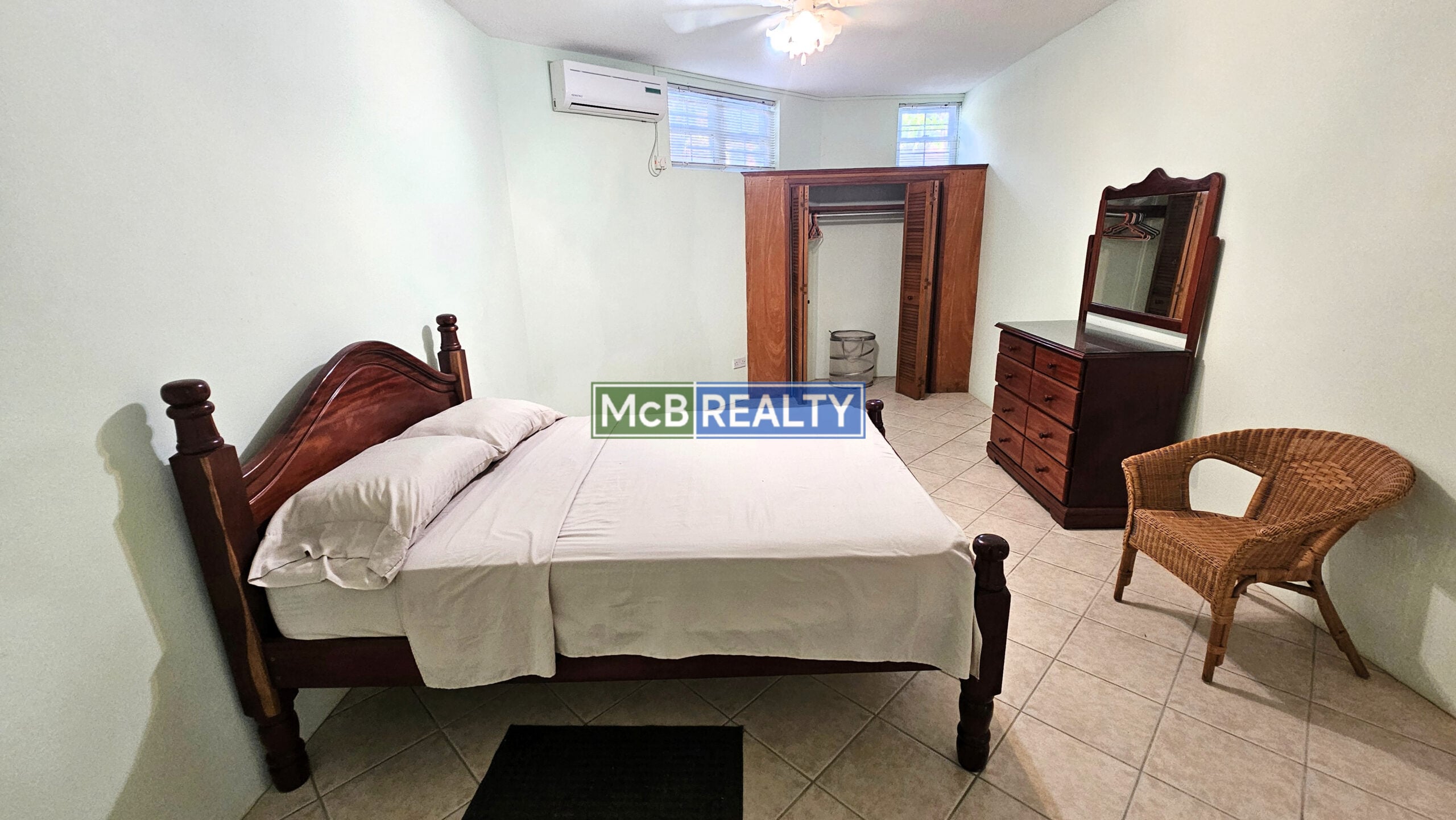 Ascend to your private oasis, accessible via a gated, paved driveway. The upper floor is dedicated to the spacious main residence, featuring an open-concept living, dining, and kitchen area that flows seamlessly onto a rooftop deck—the perfect vantage point to enjoy Grenada’s spectacular sunsets over the sea. The layout includes a master suite with a walk-in closet and an ensuite bathroom, plus two additional bedrooms, each with its own ensuite. A garage, laundry room, and two powder rooms complete this elegant living space.